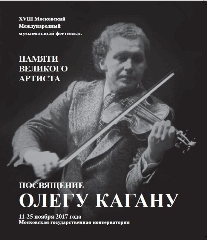 С 11 по 25 ноября 2017 года, под патронатом Министерства культуры РФ, в Московской государственной консерватории имени П. И. Чайковского в восемнадцатый раз пройдет международный музыкальный фестиваль памяти знаменитого артиста, выдающегося скрипача Олега Кагана.
