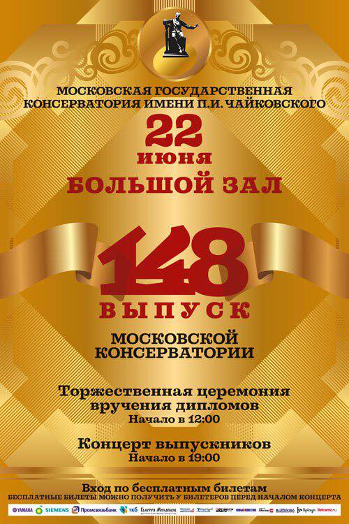 22 июня 2017 на сцену одной из крупнейших академических концертных площадок столицы – Большого зала Консерватории – выйдут молодые дарования, едва вступившие на путь музыкального искусства, – выпускники Московской консерватории.