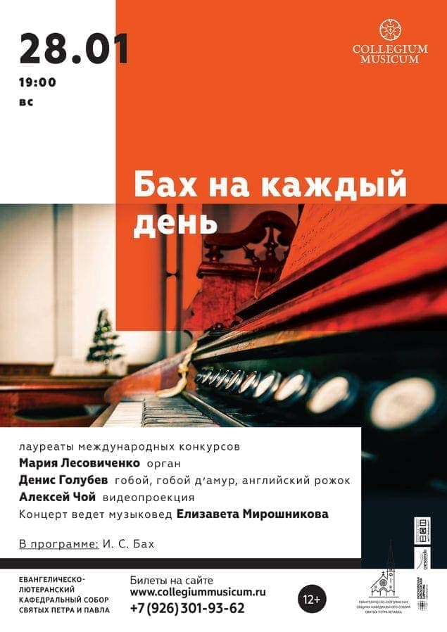 28 января 2018 года, в 19:00, в Евангелическо-лютеранском Кафедральном соборе святых Петра и Павла состоится концерт «Бах на каждый день. Орган и гобой».