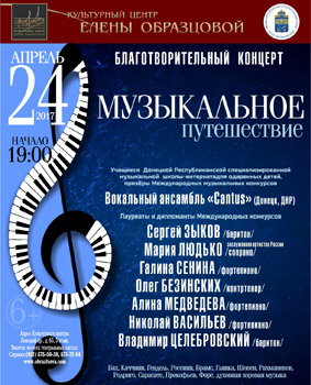 24 апреля в Культурном центре Елены Образцовой состоится благотворительный концерт, в котором примут участие юные музыканты Школы-интерната.