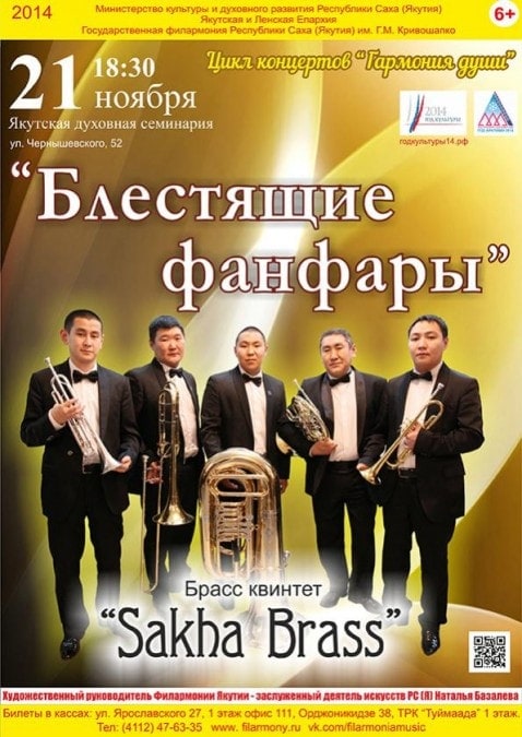 В Якутской духовной семинарии 21 ноября состоится долгожданный концерт духового квинтета Филармонии Якутии «Sakha Brass» под руководством отличника культуры РС(Я) Ивана Сивцева.
