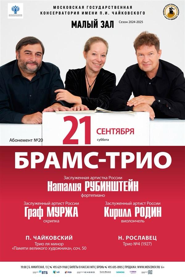 Единственное сохранившееся целиком Четвёртое трио Николая Рославца и самое знаменитое русское трио – Трио ля минор «Памяти великого художника» Петра Ильича Чайковского – в программе концерта, открывающего 21 сентября 2024 абонементный цикл ансамбля Брамс-трио «История русского фортепианного трио» в Малом зале Московской консерватории.
