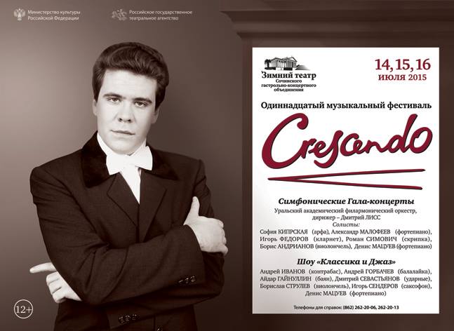 Не останется в стороне и арт-директор фестиваля: Денис Мацуев примет участие во всех концертах «Crescendo», сообщает пресс-служба администрации Сочи.