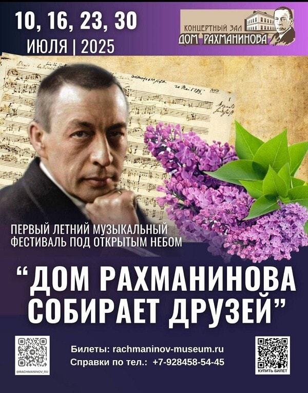 Программа первого летнего музыкального фестиваля «Дом Рахманинова собирает друзей»