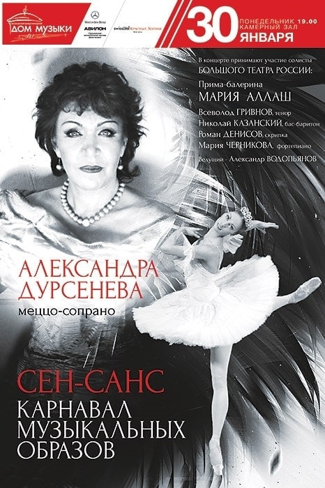 30 января 2017 в Камерном зале Московского международного дома музыки состоится вокальный вечер солистки Большого театра, заслуженной артистки России Александры Дурсеневой.