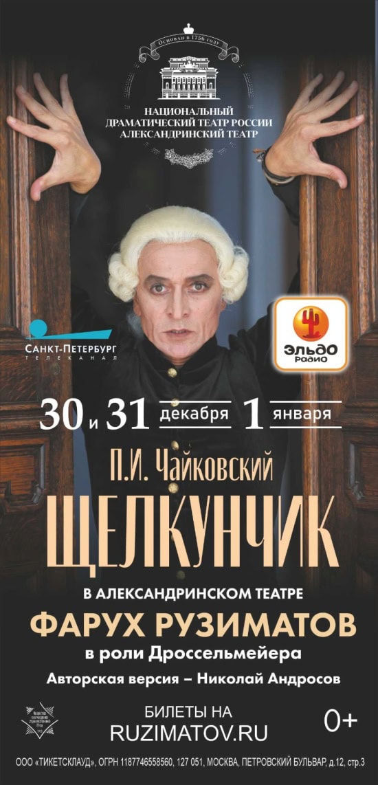 30, 31 декабря и 1 января Фарух Рузиматов выступит в балете «Щелкунчик» в Александринском театре (пл. Островского, 6).