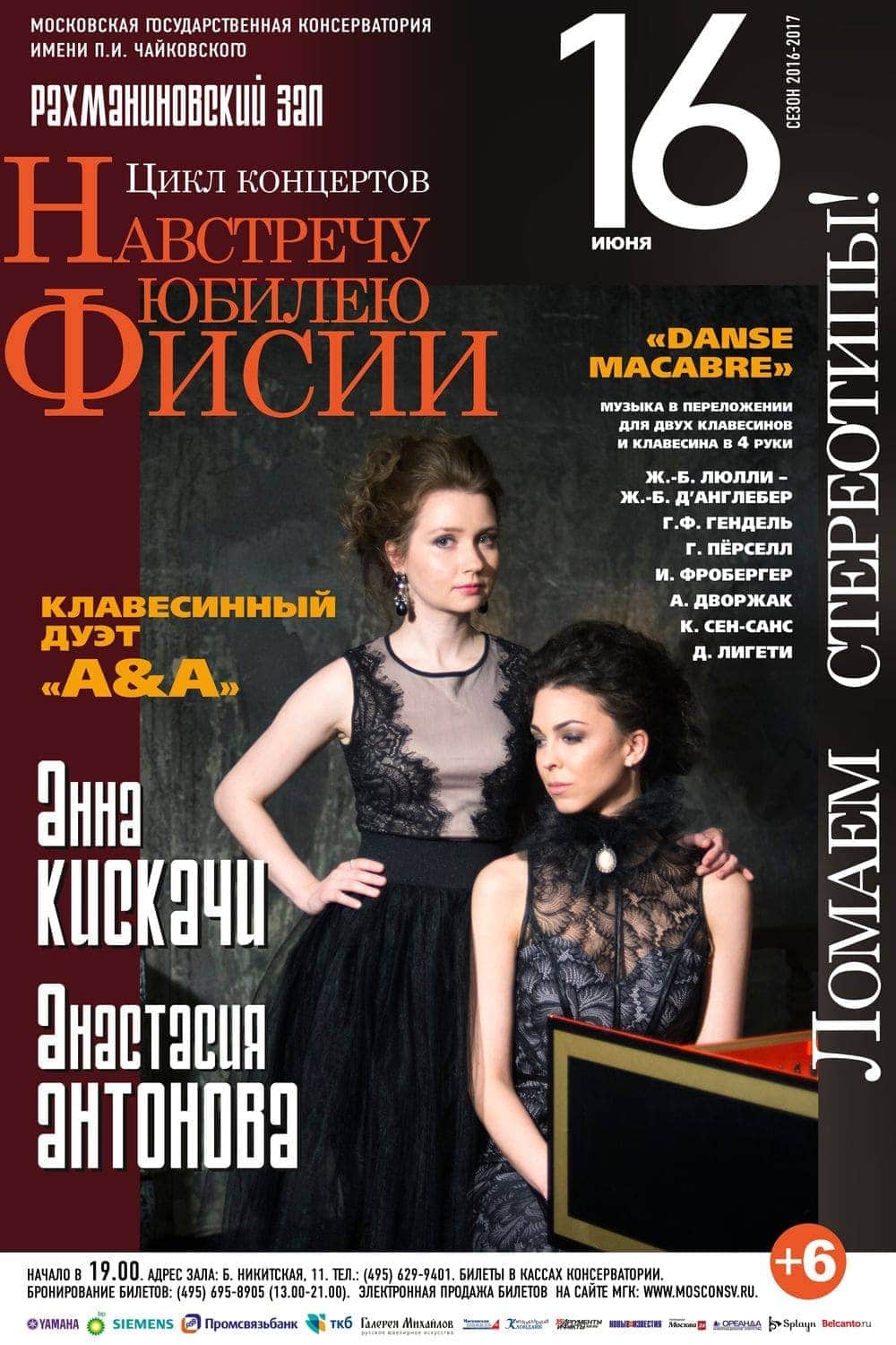 16 июня 2017 года фестиваль откроется не помпезным парадом, а эфемерным клавесинным дуэтом «A&A». Анна Кискачи и Анастасия Антонова сыграют танцевальные пьесы в переложении для клавесина в 4 руки и двух клавесинов — от Пёрселла до Сен-Санса.