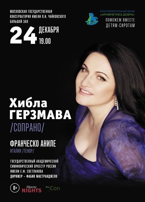 24 декабря 2015 года в Большом зале Московской консерватории состоится благотворительный Новогодний концерт при участии Народной артистки России Хиблы Герзмавы.