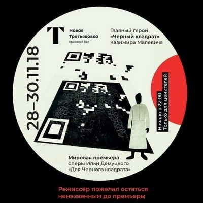 27 ноября 2018 состоится показ оперы Ильи Демуцкого «Для Черного квадрата». Театральное действие развернется на фоне знаменитого полотна Малевича.
