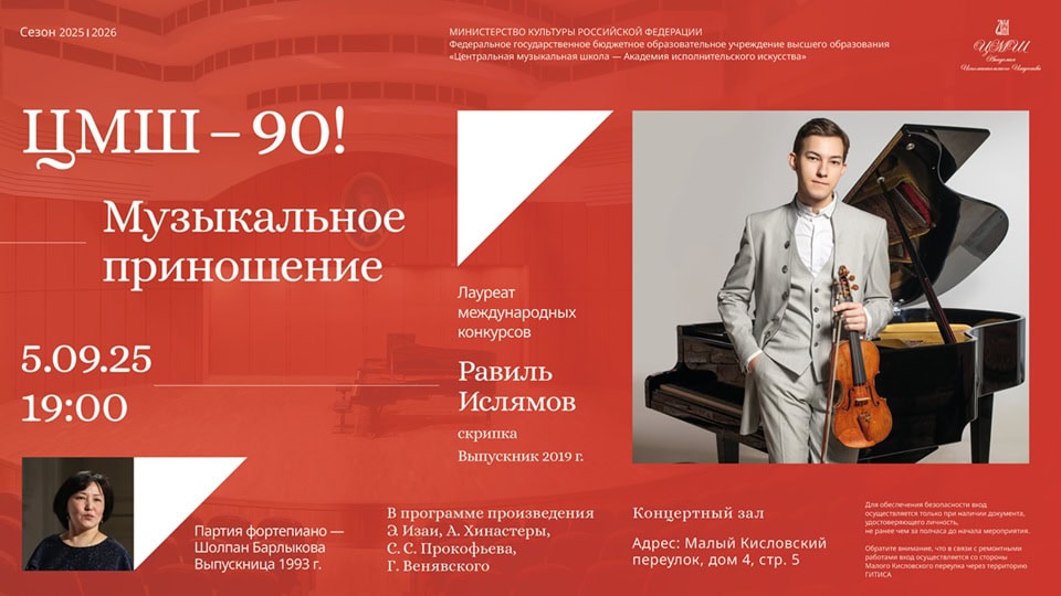 Концертом-посвящением дорогой Alma mater станет пятый вечер цикла «Музыкальное приношение» к 90-летнему юбилею ЦМШ в сезоне 2025-2026.
