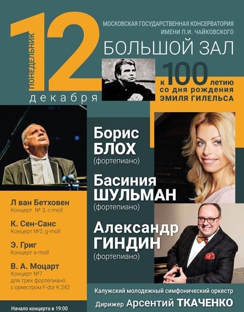 12 декабря 2016 в Большом зале Московской консерватории состоится завершающий концерт, посвященный столетию со дня рождения выдающего советского пианиста Эмиля Гилельса.