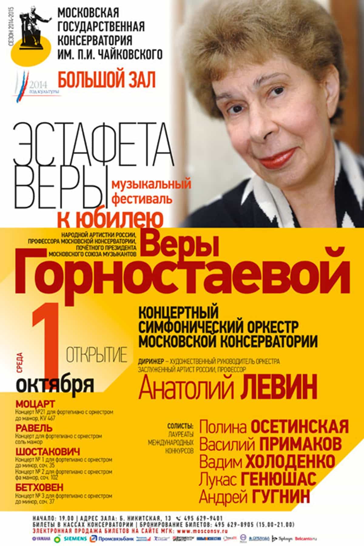 К юбилею прославленной пианистки, педагога Веры Горностаевой Московская консерватория им. П. И. Чайковского проводит с 1 по 11 октября 2014 фортепианный фестиваль-парад.