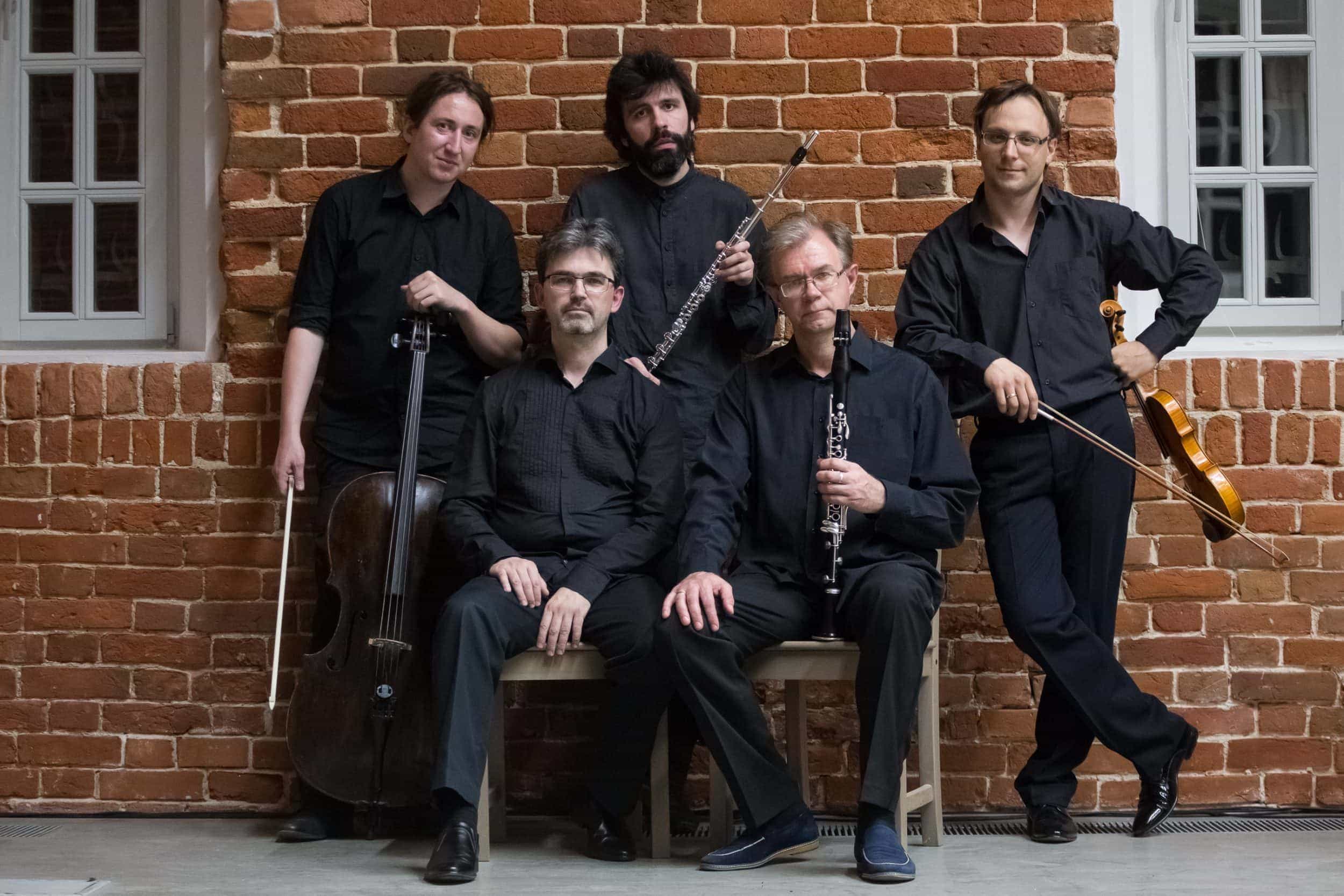 На сцену выйдут Олег Танцов (кларнет), Марина Рубинштейн(флейта), Глеб Хохлов (скрипка), Илья Рубинштейн (виолончель) и Павел Домбровский (фортепиано).