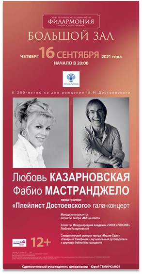 16 сентября 2021 в Большом зале Петербургской филармонии пройдет концерт «Плейлист Достоевского», посвященный 200-летию со дня рождения писателя.