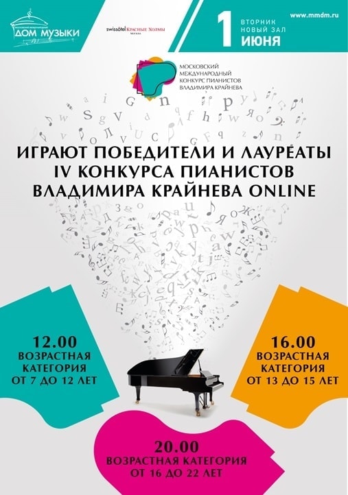 1 июня 2021, в Международный день защиты детей, в Новом зале Московского международного Дома музыки состоятся сразу три концерта победителей и лауреатов IV Московского международного конкурса пианистов имени Владимира Крайнева, который в этом году проходил в режиме онлайн.