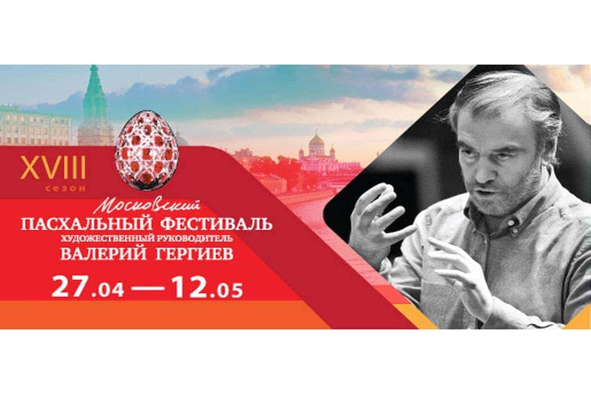 Торжественное открытие XVIII Московского Пасхального фестиваля состоится 28 апреля, в день светлой Пасхи, в Большом зале Московской консерватории им. П. И. Чайковского. Концерты Симфонического оркестра Мариинского театра под управлением Валерия Гергиева пройдут в 13:00 и в 19:00.