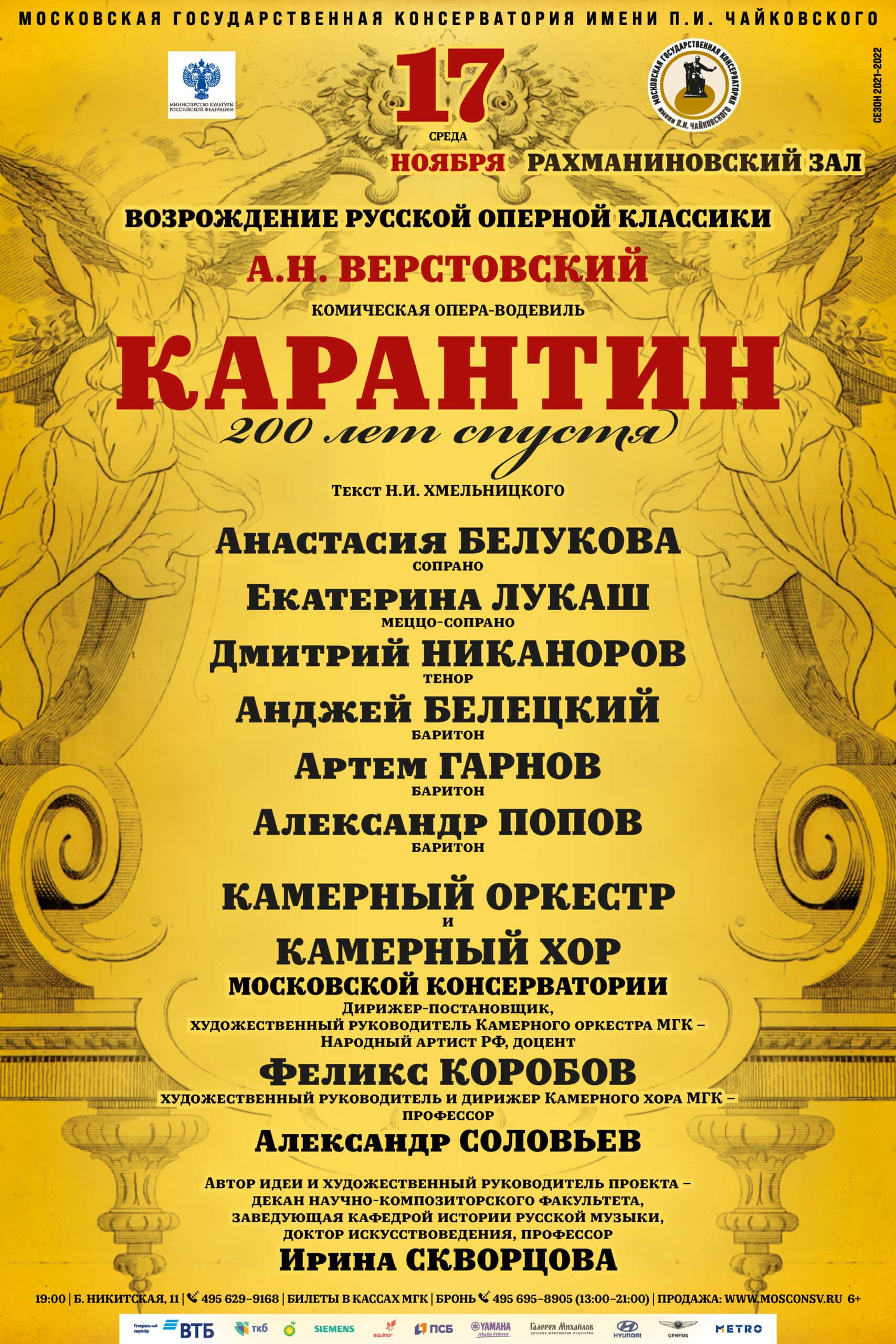 17 ноября 2021 года в Рахманиновском зале случится… «Карантин». Именно так называется комическая опера-водевиль Алексея Верстовского, которая будет представлена в рамках проекта Московской консерватории «Возрождение русской оперной классики».