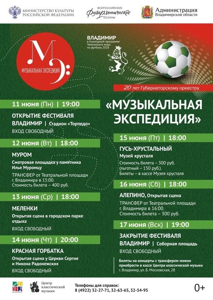 В 2018 году «Музыкальная экспедиция» отправится по новому маршруту, в который войдет множество исторических и заповедных локаций Владимирского края: стадион «Торпедо» на Студеной горе Владимира , Смотровая площадка у памятника Илье Муромцу в Муроме, сквер у бывшей женской гимназии в городе Меленки, Церковь Сергия и Никона Радонежских в Красной Горбатке, Музей хрусталя им. Мальцовых в Гусь-Хрустальном, село Алепино — Родина русского писателя Владимира Солоухина, Соборная площадь города Владимира.