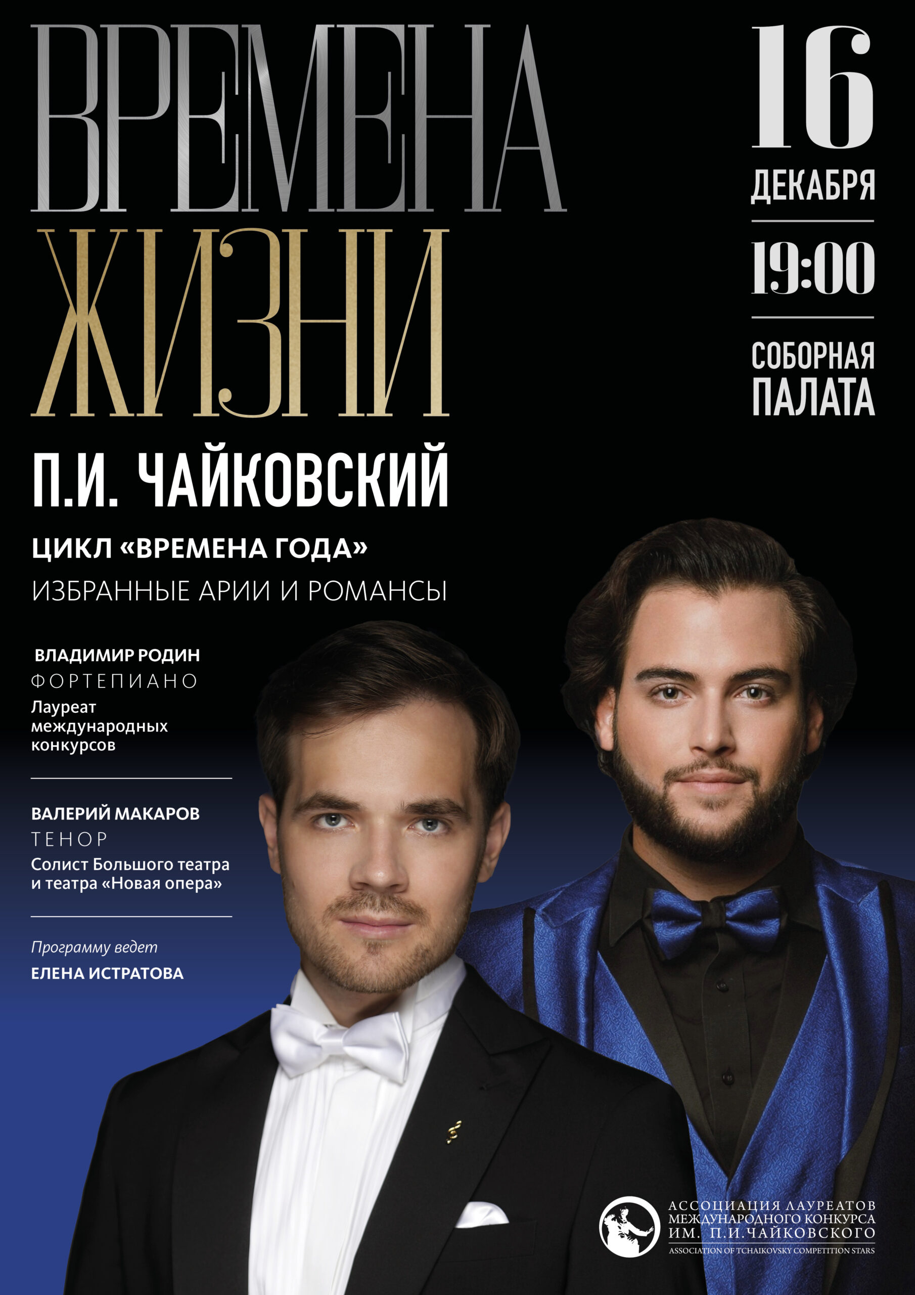 Программу представляют Владимир Родин (лауреат международных конкурсов, фортепиано), Валерий Макаров (тенор, солист Большого театра и театра «Новая опера») и музыковед Елена Истратова.