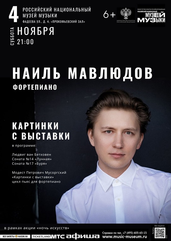 4 ноября 2023 года, в рамках акции «Ночь искусств», в гостях у Российского национального музея музыки пианист, лауреат престижных международных конкурсов, выпускник Московской консерватории имени П. И. Чайковского и университета «Моцартеум» Наиль Мавлюдов.