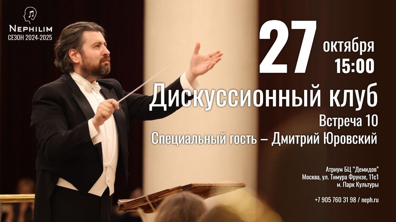 27 октября 2024 состоится десятое заседание Дискуссионного клуба в рамках образовательного проекта “Нефилим”. Специальным гостем станет дирижер Дмитрий Юровский.