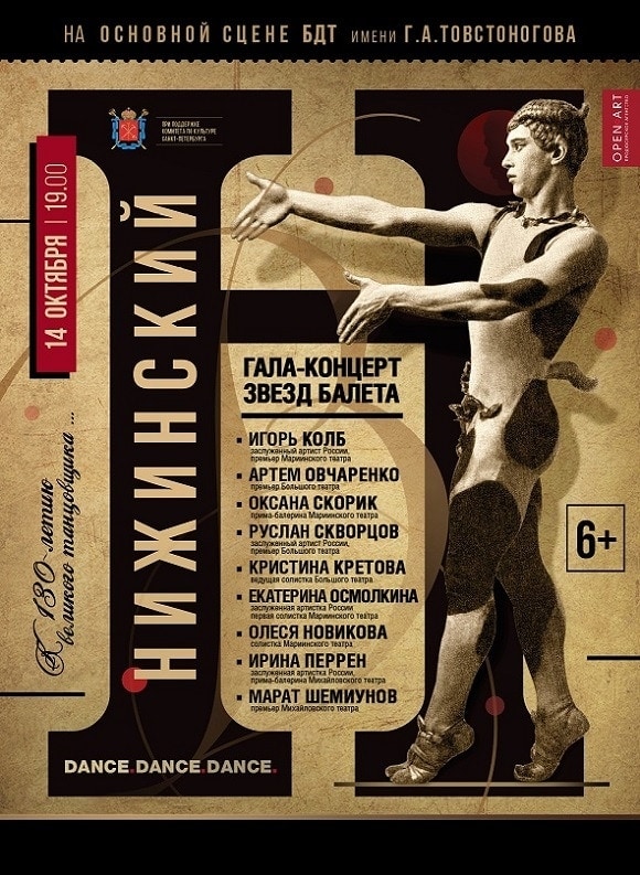 130-летие со дня рождения великого танцовщика Вацлава Нижинского проект Dance.Dance.Dance отметит большим гала-концертом на сцене БДТ 14 октября 2019.