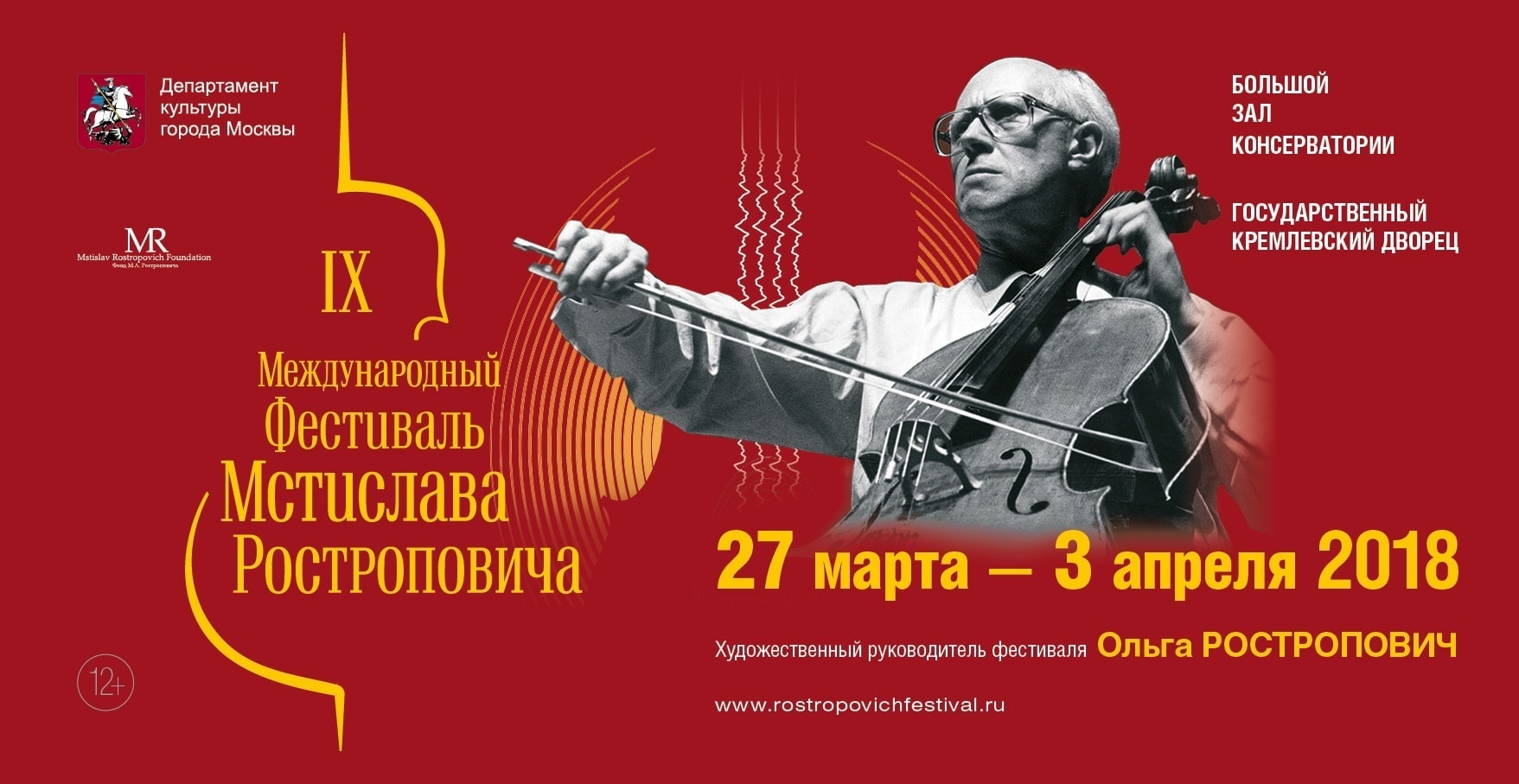 С 27 марта по 3 апреля 2018 в Москве пройдет IX Международный фестиваль Мстислава Ростроповича.