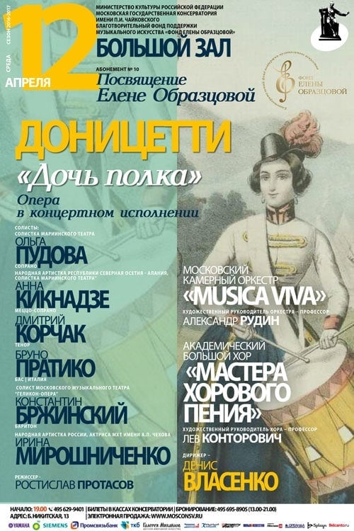 Оперу Гаэтано Доницетти «Дочь полка» в концертном исполнении представят 12 апреля 2017 в Большом зале Московской консерватории.