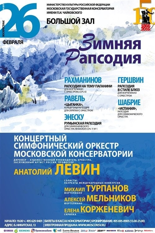 26 февраля один из лучших коллективов Альма-матер представит столичной публике тематическую программу «Зимняя рапсодия». В программе — рапсодии русских и зарубежных композиторов, излюбленные слушателями мелодии: Рапсодия на тему Паганини Рахманинова, Рапсодия в стиле блюз Гершвина, «Цыганка» Равеля, «Испания» Шабрие и другие.