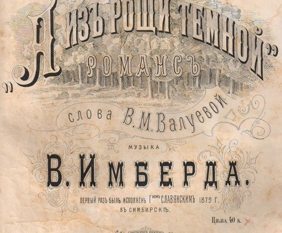 Особого внимания заслуживают подлинные ноты романса «А из рощи тёмной» В. Имберда. Именно под этим псевдонимом писал музыку владелец первой частной типографии Симбирска Василий Васильевич Черников.