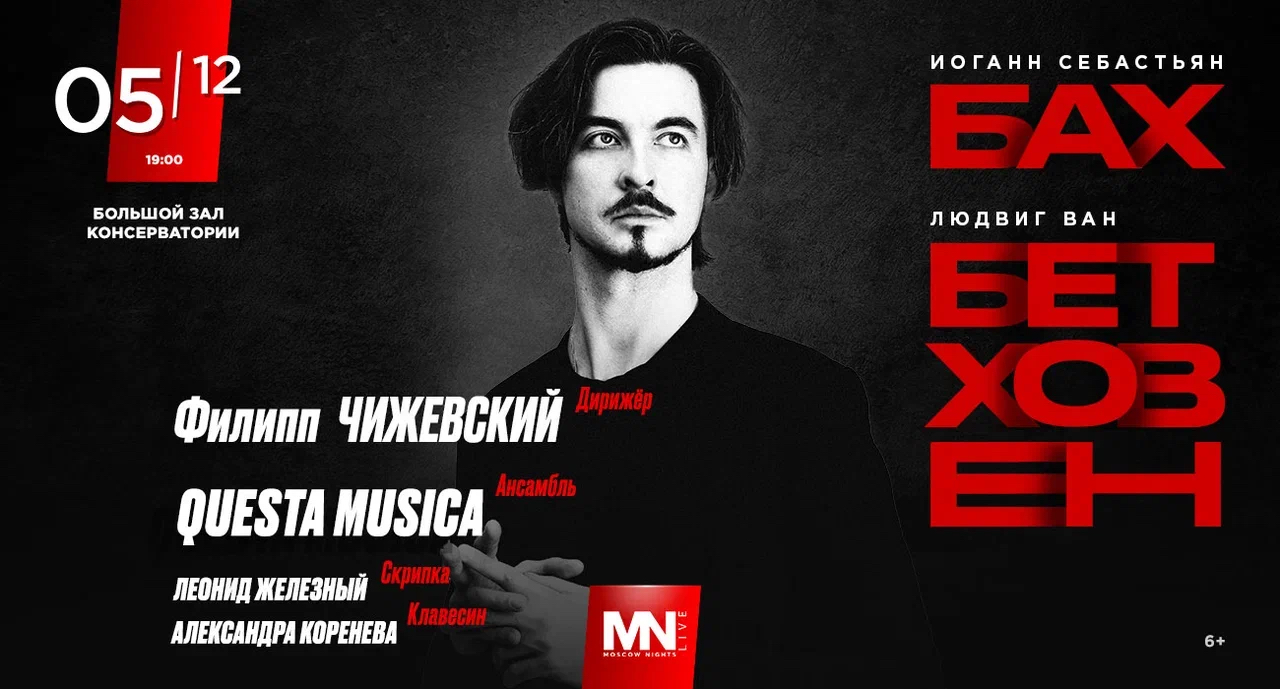 5 декабря 2023 года в Большом зале Московской консерватории состоится концерт известного дирижера Филиппа Чижевского и его ансамбля Questa Musica, посвященный музыке великих классиков — Иоганна Себастьяна Баха и Людвига ван Бетховена.
