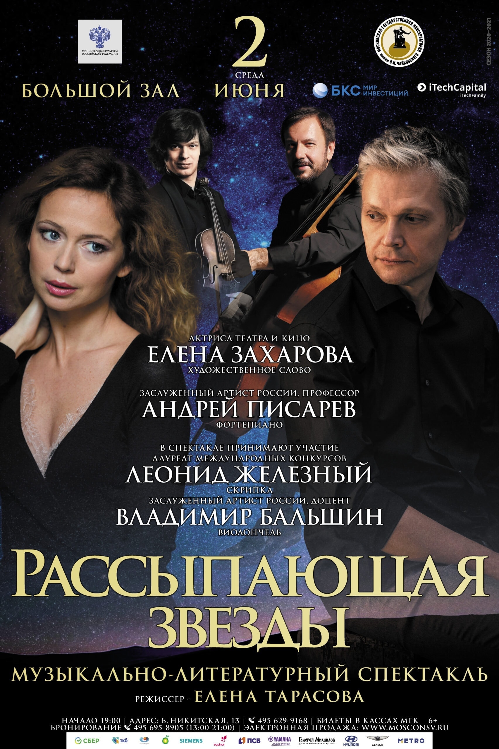 2 июня 2021 года всех любителей классической музыки ожидает прекрасный вечер в Большом зале Московской консерватории. Публике будет представлен музыкально-литературный спектакль «Рассыпающая звезды» (режиссер — Елена Тарасова).