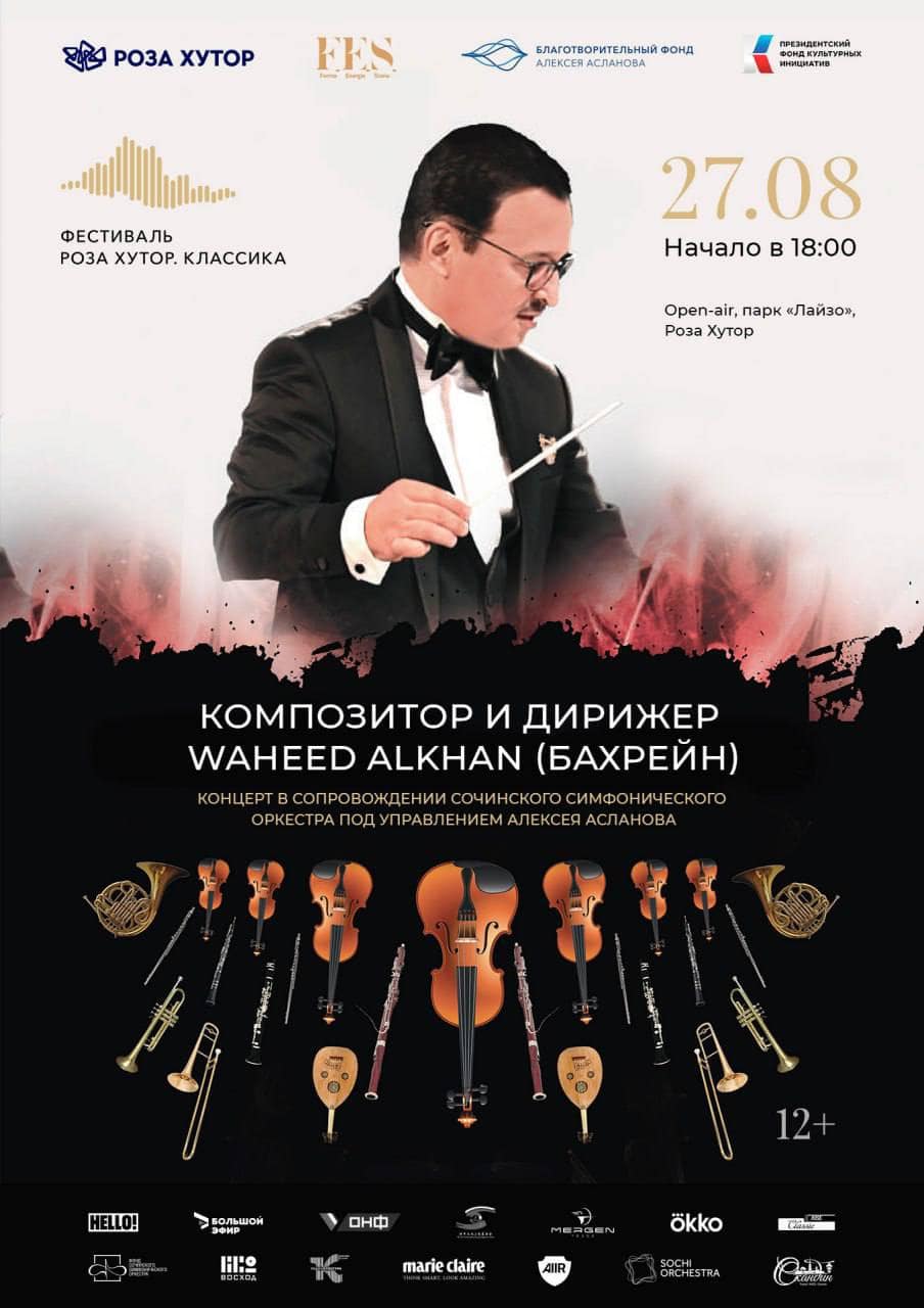 Публика впервые услышит музыку композитора в исполнении автора, группы бахрейнских музыкантов и Сочинского симфонического оркестра под управлением Алексея Асланова.