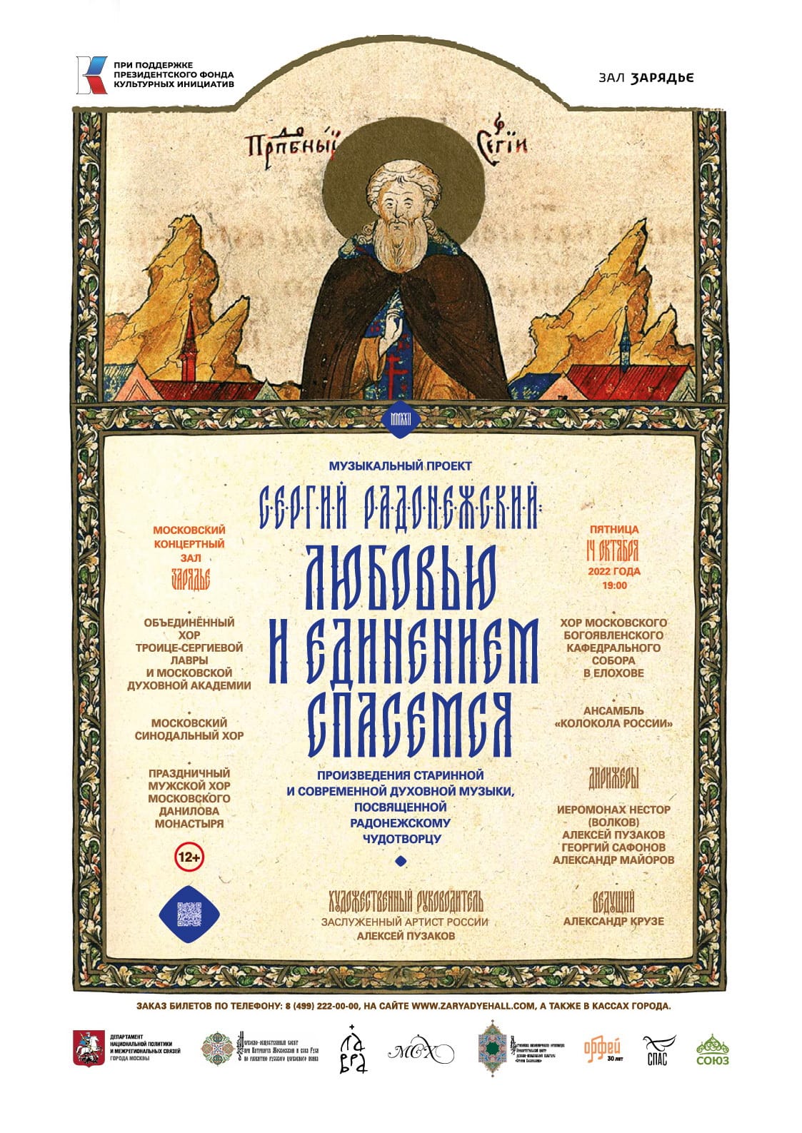 14 октября 2022 года (пятница) в 19:00 в Московском концертном Зале Зарядье состоится музыкальный проект: «Сергий Радонежский: любовью и единением спасемся».
