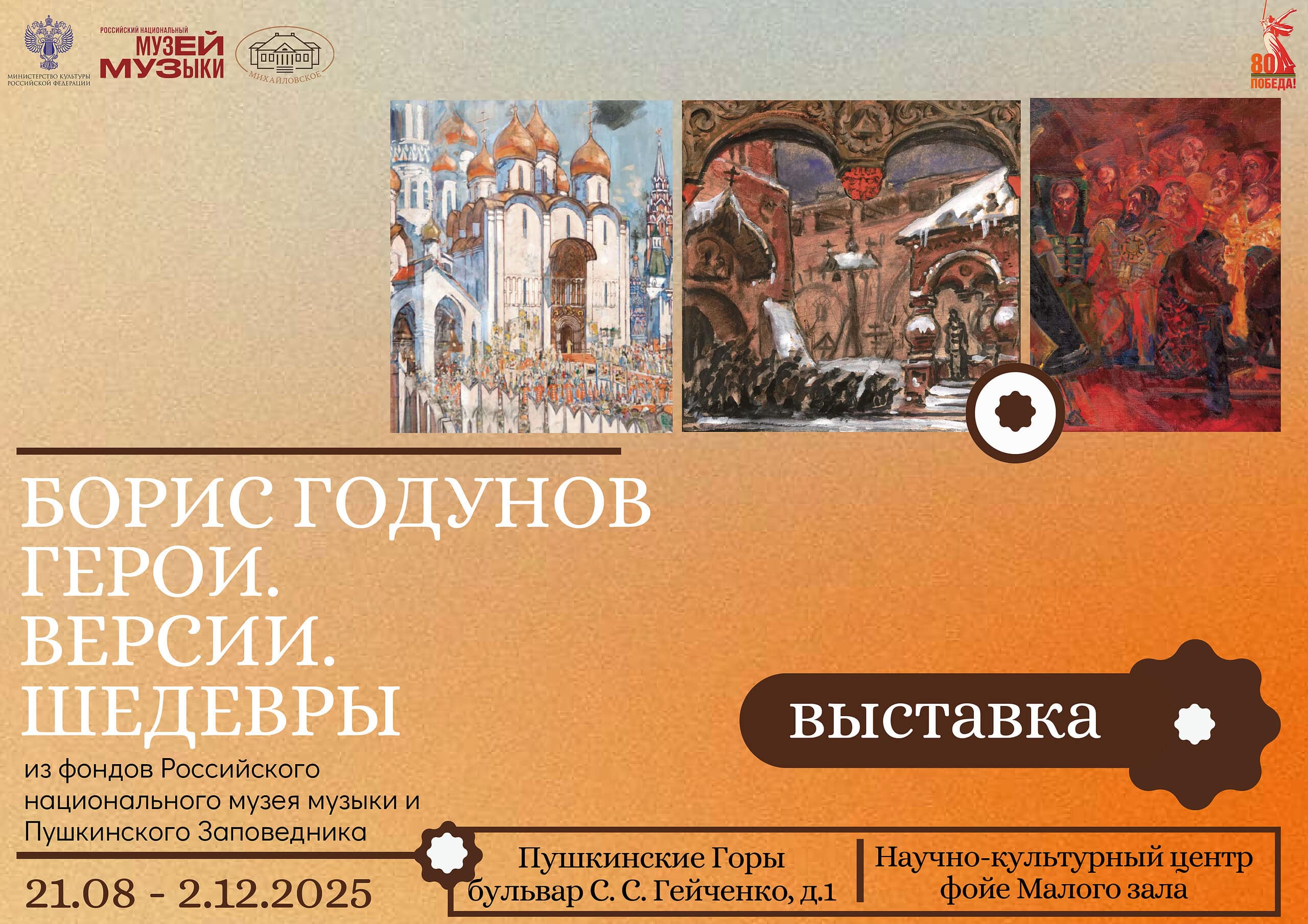 21 августа 2025 года открывается совместная выставка Музея музыки и Пушкинского Заповедника «Борис Годунов». Герои. Версии. Шедевры» к 200-летию создания драмы Александра Сергеевича Пушкина «Борис Годунов». Выставка знакомит со сценической судьбой этого произведения.