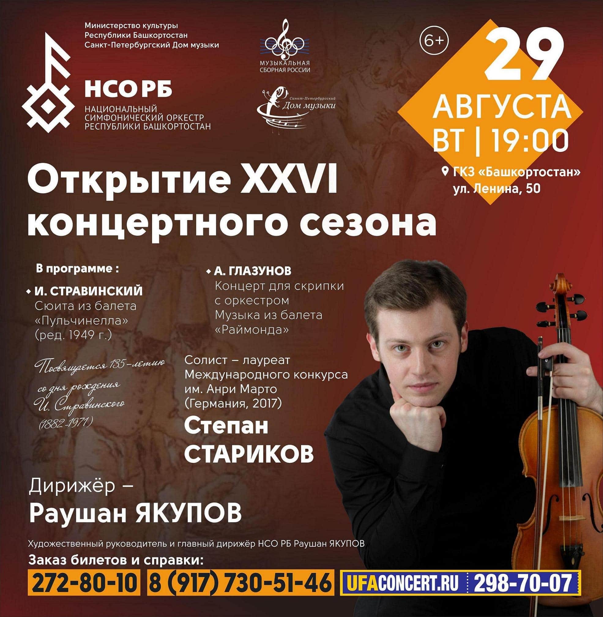 29 августа 2017 года Санкт-Петербургский Дом музыки и Национальный симфонический оркестр Республики Башкортостан приглашают в Уфу на открытие XXVI концертного сезона.