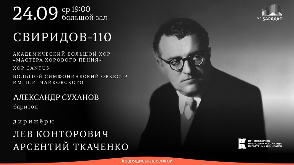 24 сентября 2025 в 19:00 в Зале Зарядье состоится концерт, посвященный 110-летию со дня рождения Георгия Свиридова, где публику ожидает несколько премьер.