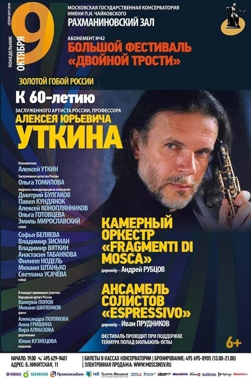 9 октября 2017 года, в 19.00, в Рахманиновском зале Московской консерватории пройдёт концерт «Золотой гобой России», приуроченный к 60-летию Алексея Уткина.