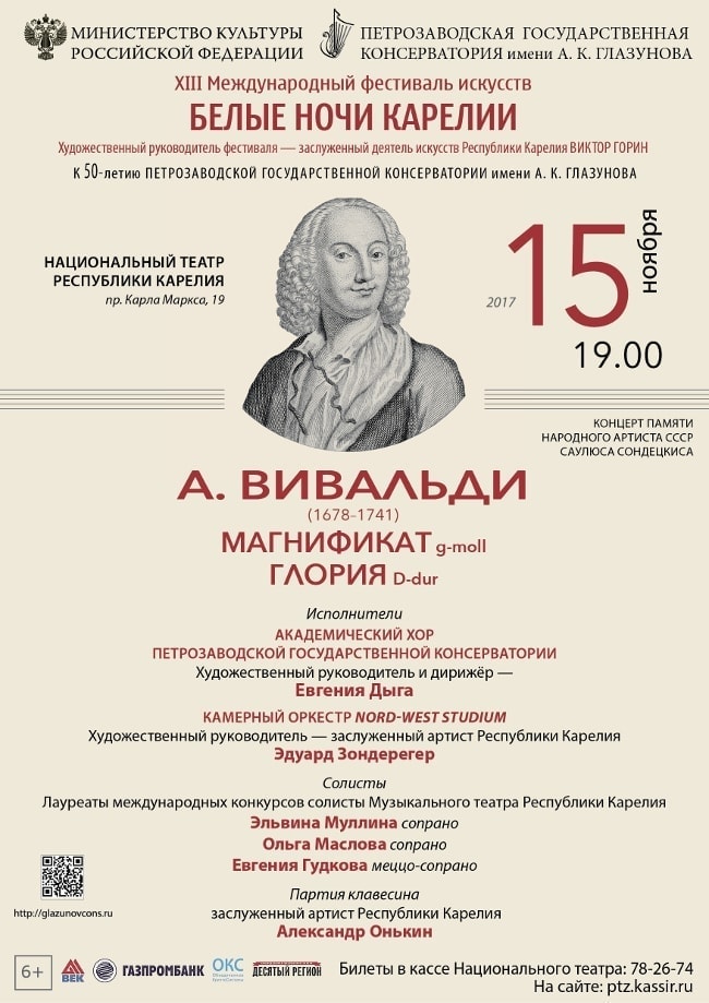 15 ноября 2017 года в 19.00 в Национальном театре Республики Карелия (пр. Карла Маркса, 19) состоится концерт XIII Международного фестиваля искусств «Белые ночи Карелии» (художественный руководитель фестиваля — заслуженный деятель искусств Республики Карелия Виктор Горин) — концерт памяти народного артиста СССР Саулюса Сондецкиса.