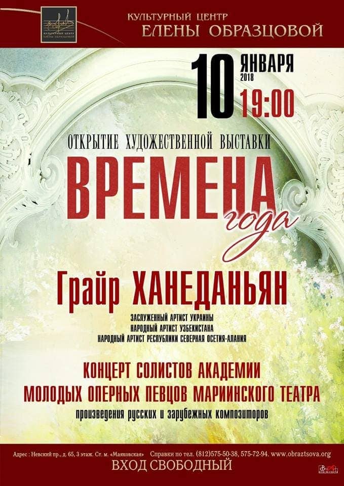 10 января 2018 года в Культурном Центре Елены Образцовой состоится открытие художественной выставки «Времена года».