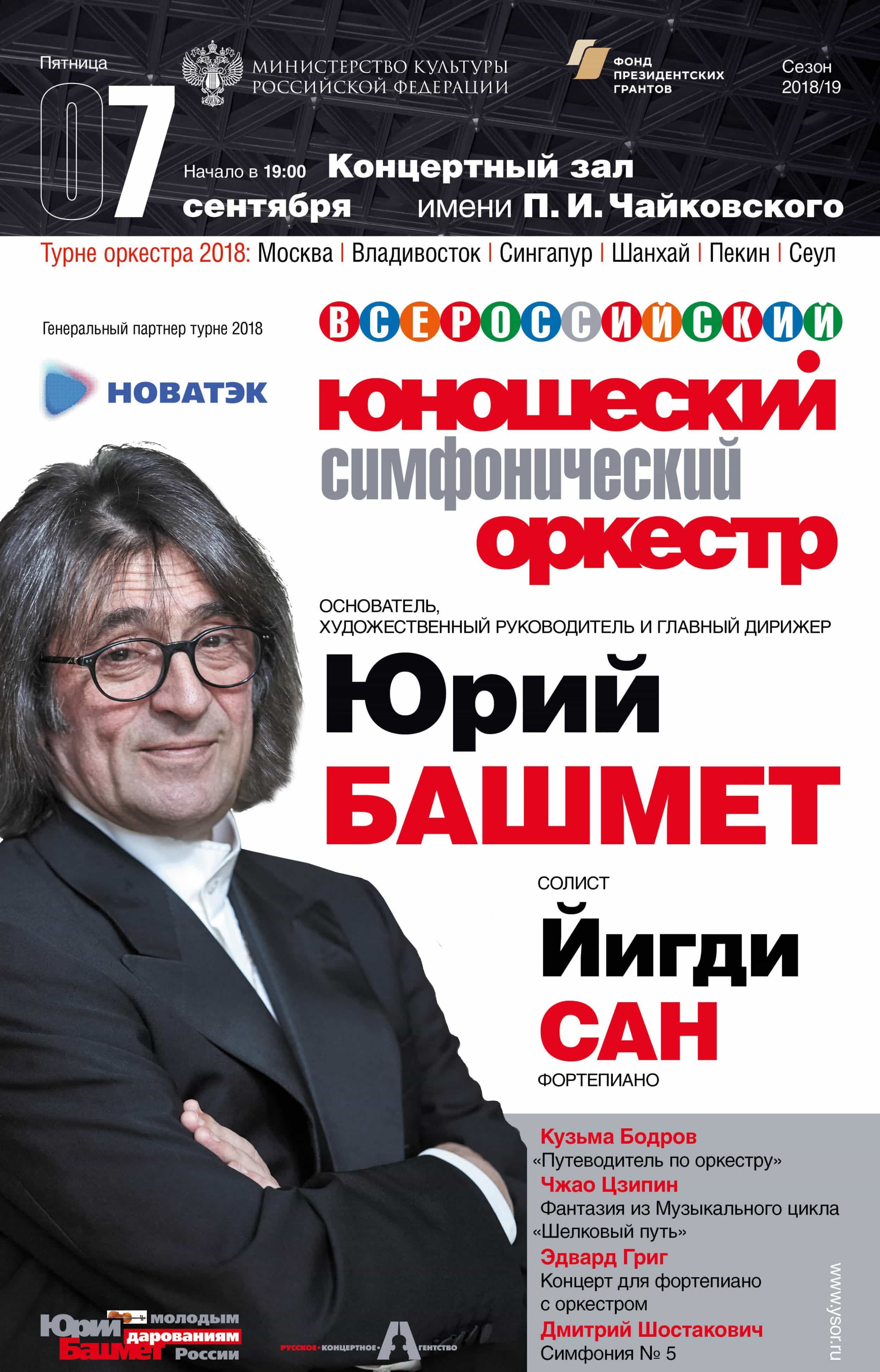 За дирижерским пультом оркестра будет находиться главный дирижер и художественный руководитель Всероссийского юношеского симфонического оркестра Юрий Башмет.