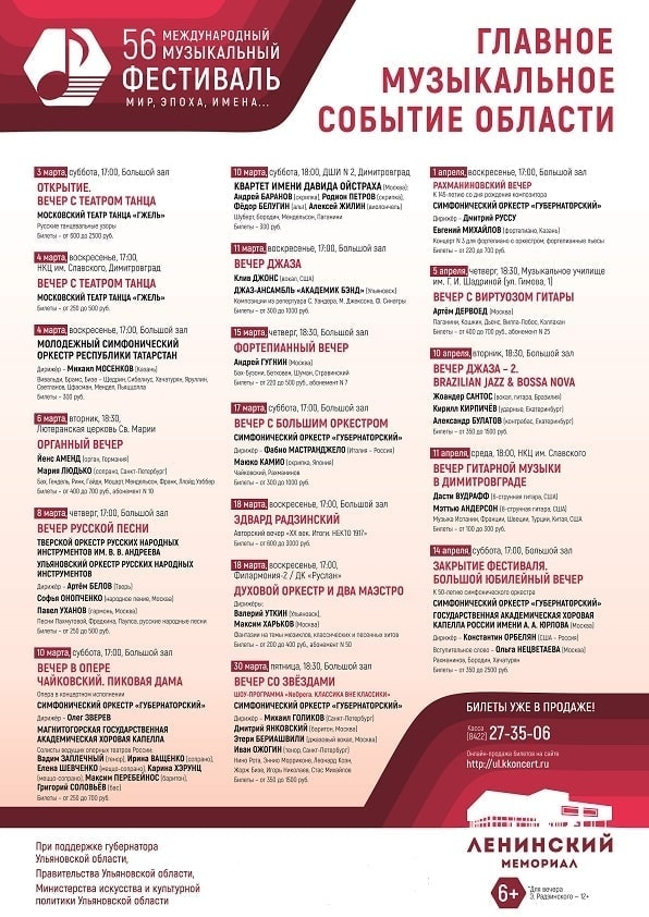 22 концерта пройдут с 3 марта по 14 апреля на площадках Ульяновска, Димитровграда, в крупных районных центрах региона.