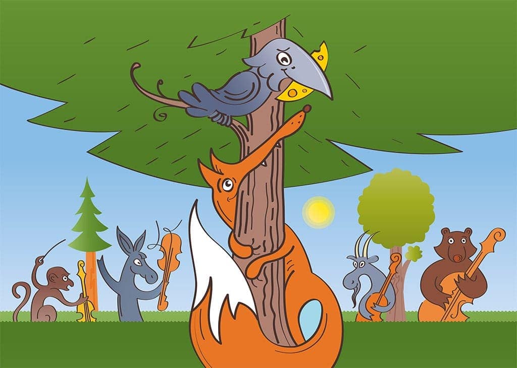 Лейтмотив — у героев квартета. Споры Проказницы-мартышки, Осла, Козла и косолапого Мишки прерывают персонажи других басен. У каждого своя музыкальная история. Запел даже кусок сыра.