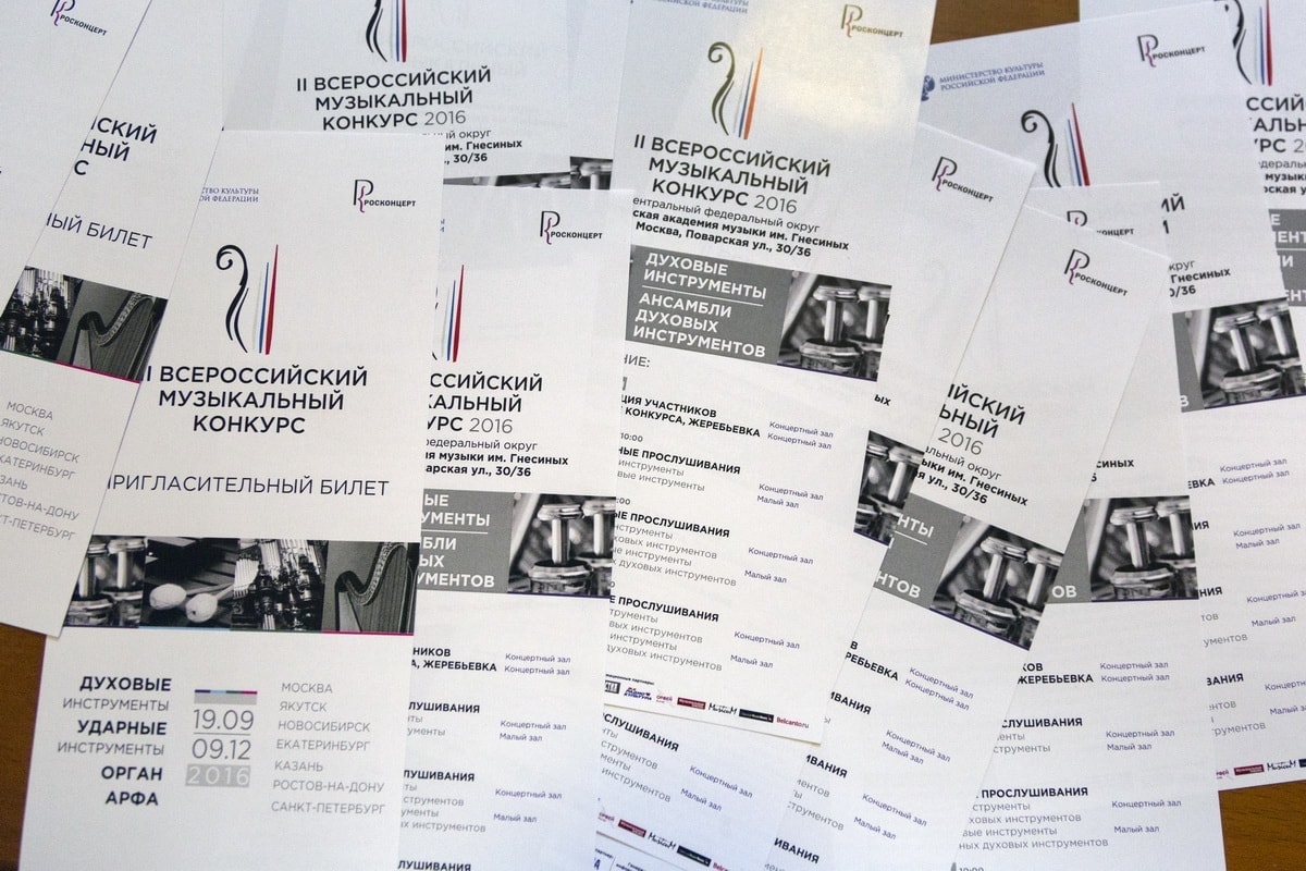 II Всероссийский музыкальный конкурс проходит во всех федеральных округах РФ с 19 сентября по 9 декабря 2016 года по специальностям: «Духовые инструменты, ансамбли духовых инструментов», «Ударные инструменты», «Орган» и «Арфа».