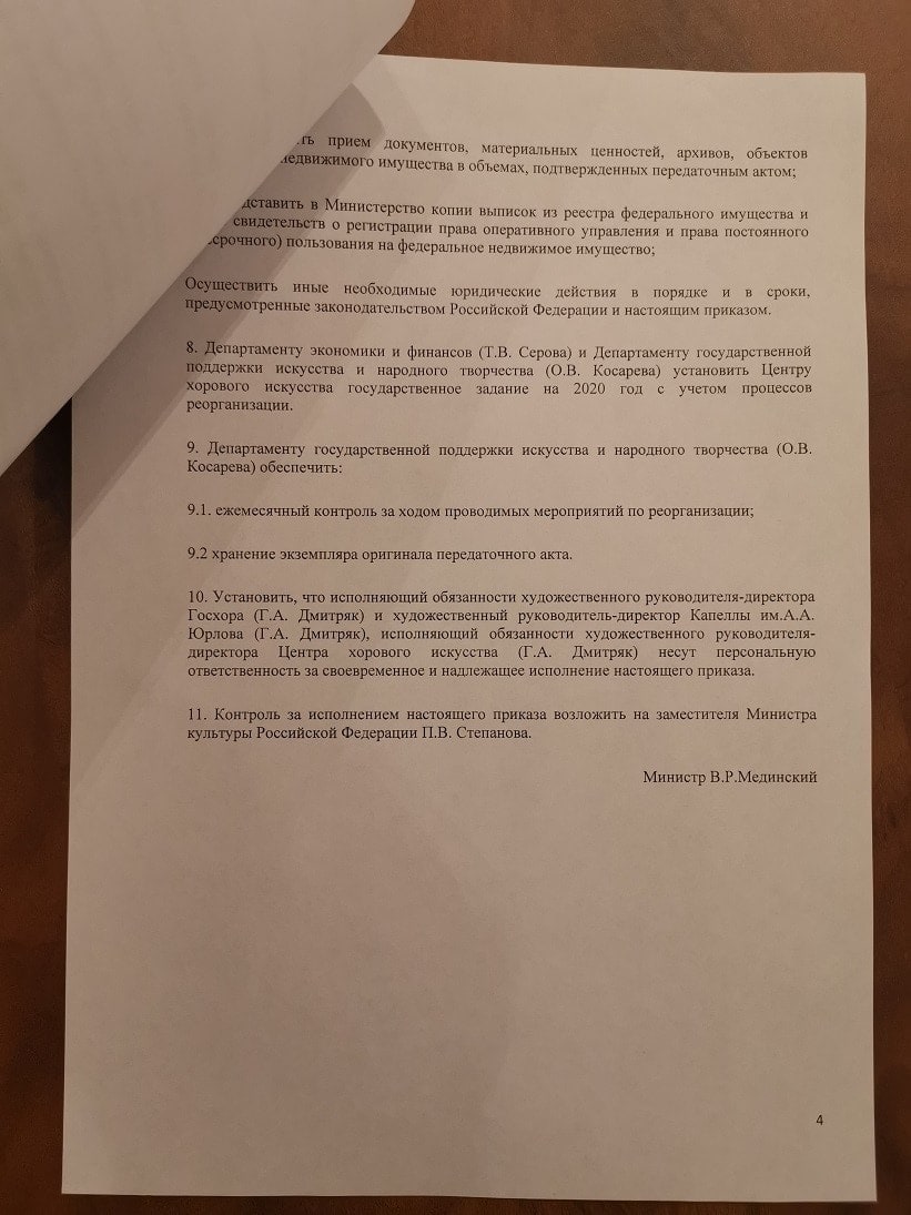 В министерстве NEWS.ru сообщили, что такой документ не существует, а в капелле имени Юрлова информацию о планах по объединению назвали домыслами и слухами. Более того, сам Дмитряк в разговоре с NEWS.ru заявил, что не существует никаких задокументированных указаний на эту тему.
