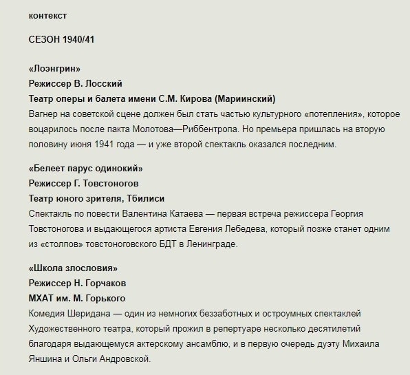 Так или иначе, для отечественного балета осмысление партитуры Делиба так и остановилось в октябре 1941-го, на финальных просмотрах практически реализованного плана Голейзовского. Война прекратила линию фантастических балетов — возвращение Большого к «Коппелии» в 1949 году отмечено жизнерадостным упрощением и изгнанием любого тумана.