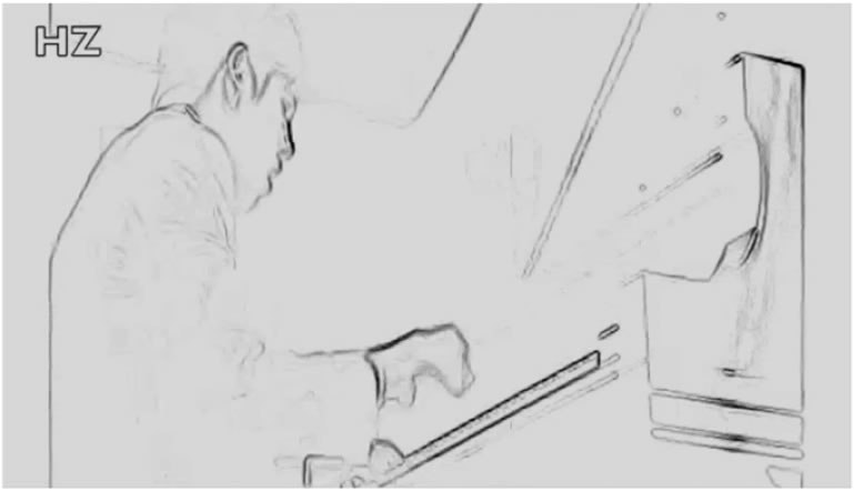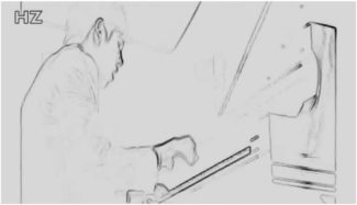 Видеоклипы пропустили через графический фильтр, который оставил лишь контрастные контуры пианистов за роялем.