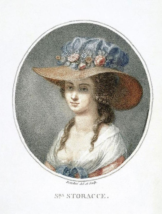 Речь идет ни о ком ином, как о знаменитой певице Анне Стораче. Красавица итальянка выросла в Лондоне (из-за чего ее имя порою пишется как Нэнси Сторас) и вскружила голову не одному любителю бельканто. В частности, один из них, граф Цинцендорф, пишет о примадонне: