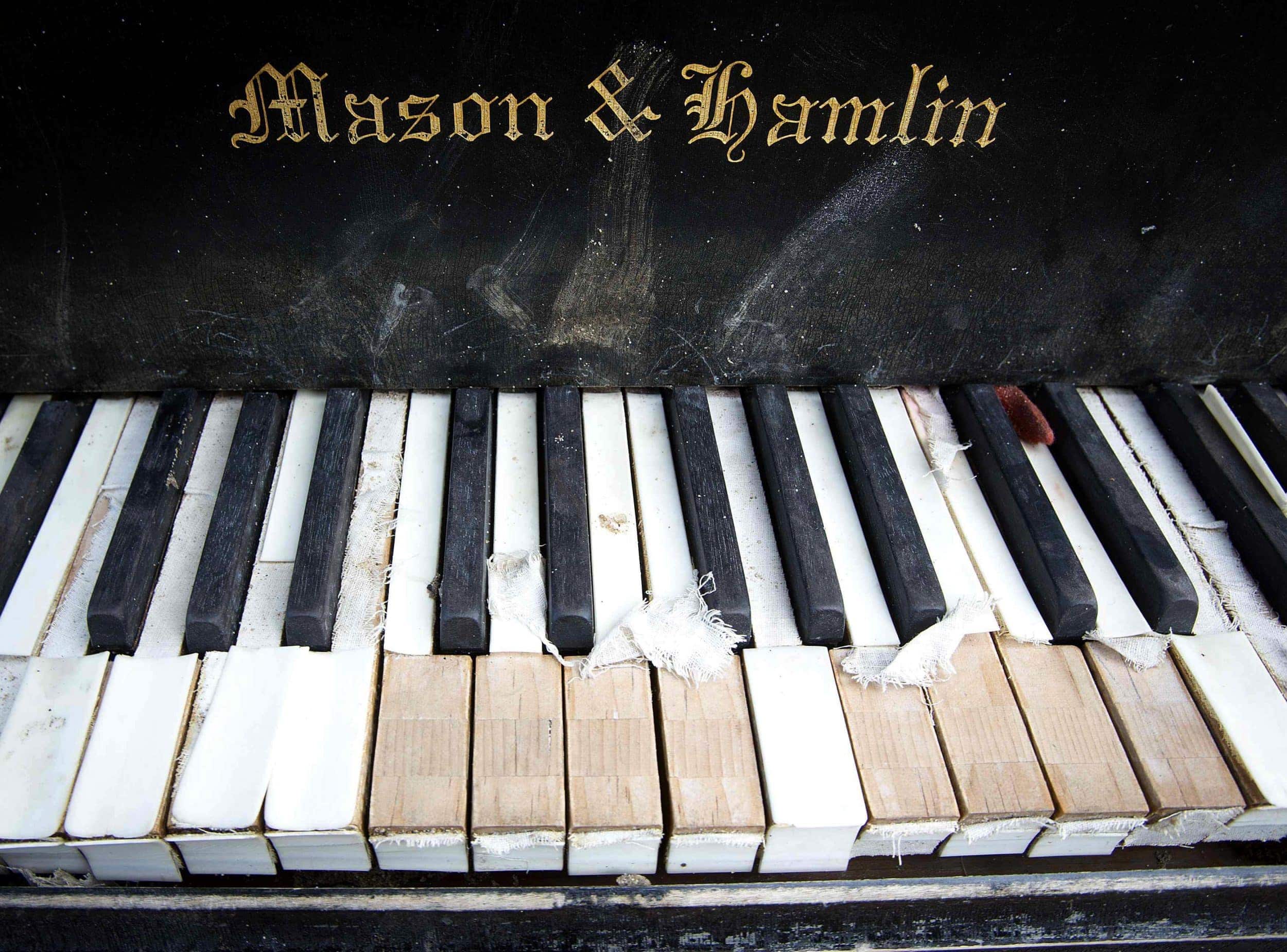 Инструмент марки Mason & Hamlin возник из-под воды во время отлива и стоит под Бруклинским мостом.