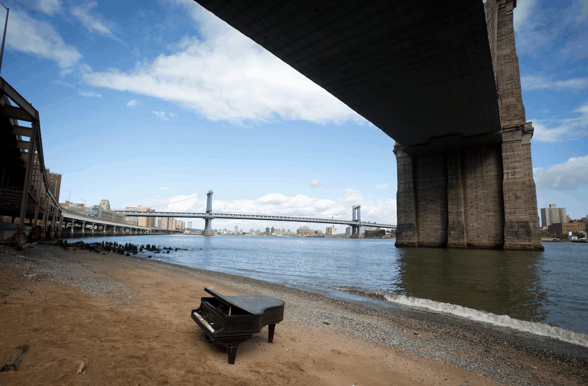 На этой неделе жители Нью-Йорка обнаружили на берегу реки Ист ривер непонятным образом появившийся из воды рояль.